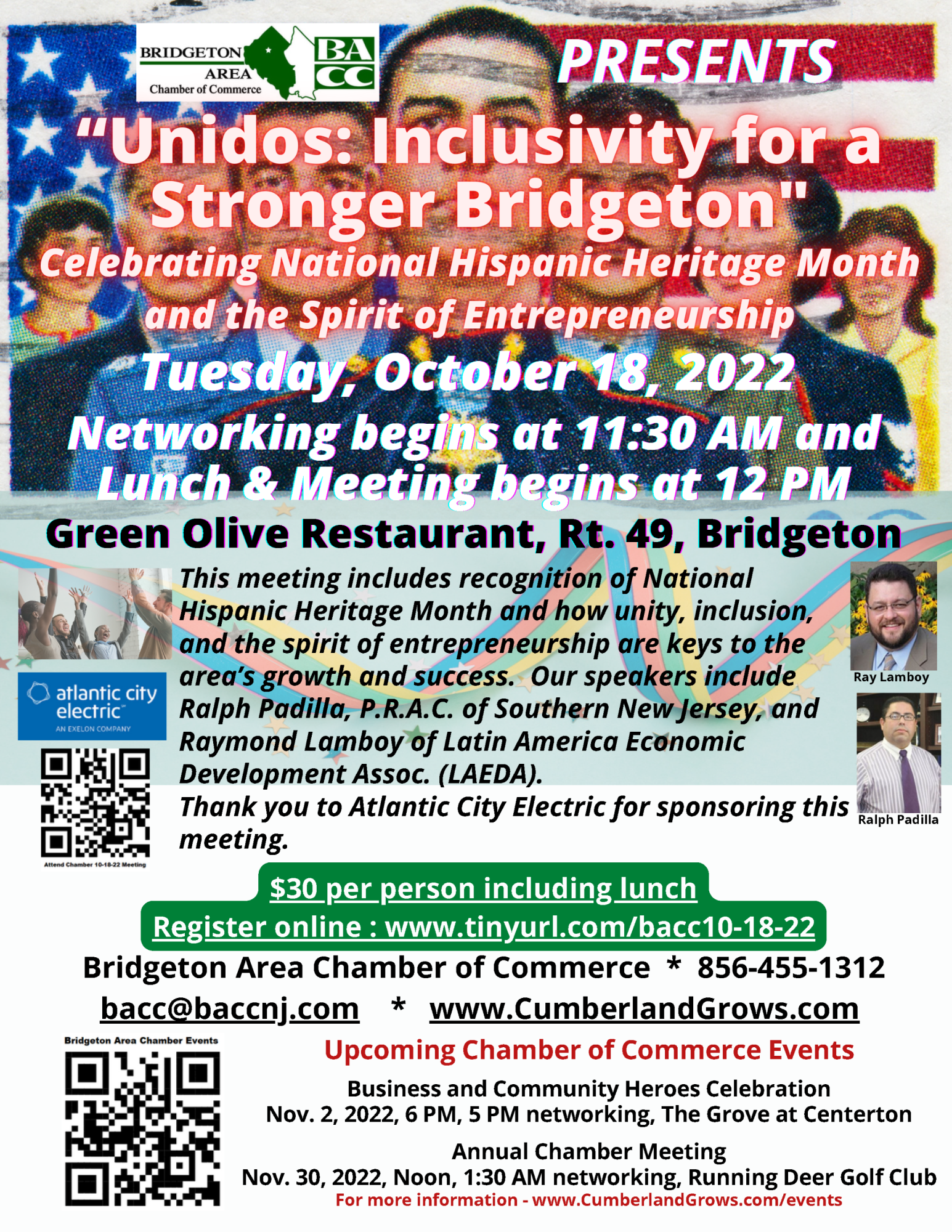 This meeting at the Green Olive Restaurant in Bridgeton, Hopewell Township, will include recognition of National Hispanic Heritage Month and how unity, inclusion, and the spirit of entrepreneurship are keys to the area’s growth and success.